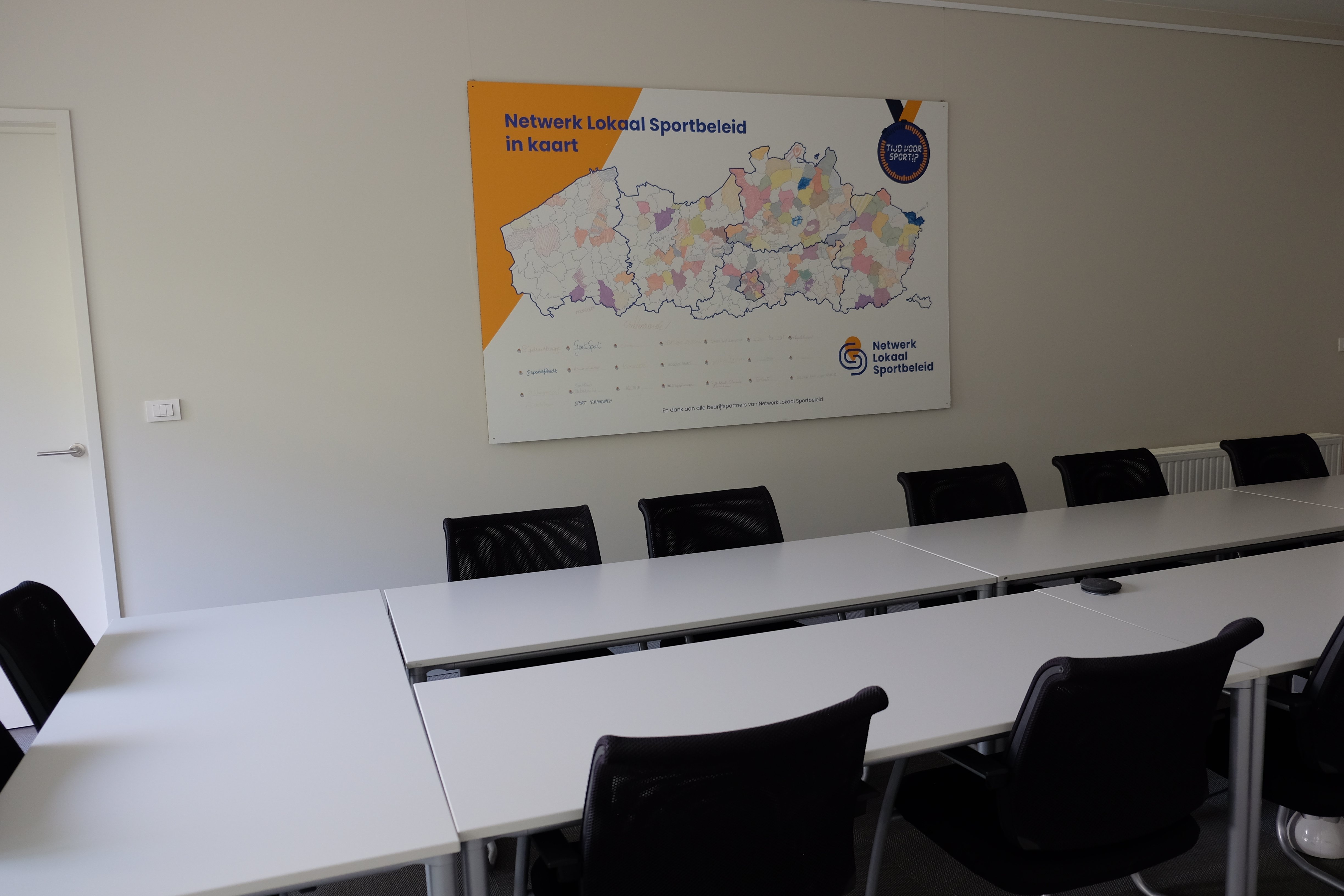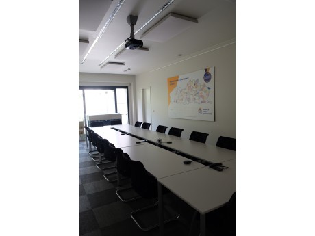 Onze grote vergaderzaal is voorzien van een groot scherm en alle comfort om efficiënt samen te werken.